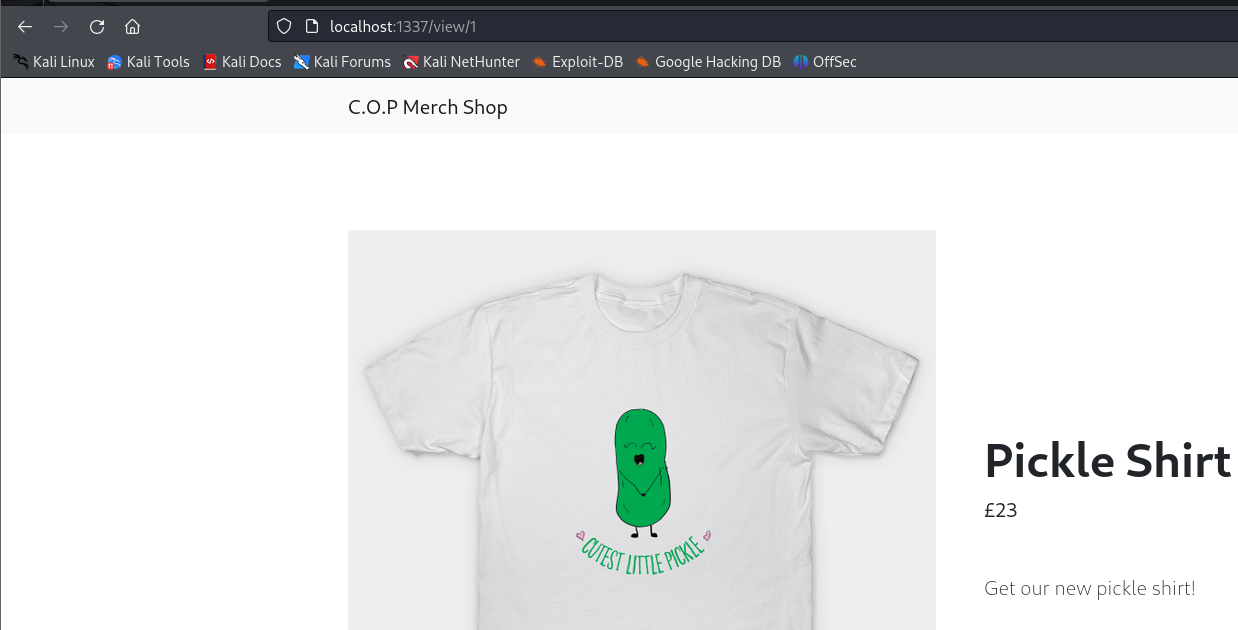 The C.O.P (Cult of Pickles) have started up a new web store to sell their merch. We believe that the funds are being used to carry out illicit pickle-based propaganda operations! Investigate the site and try and find a way into their operation!